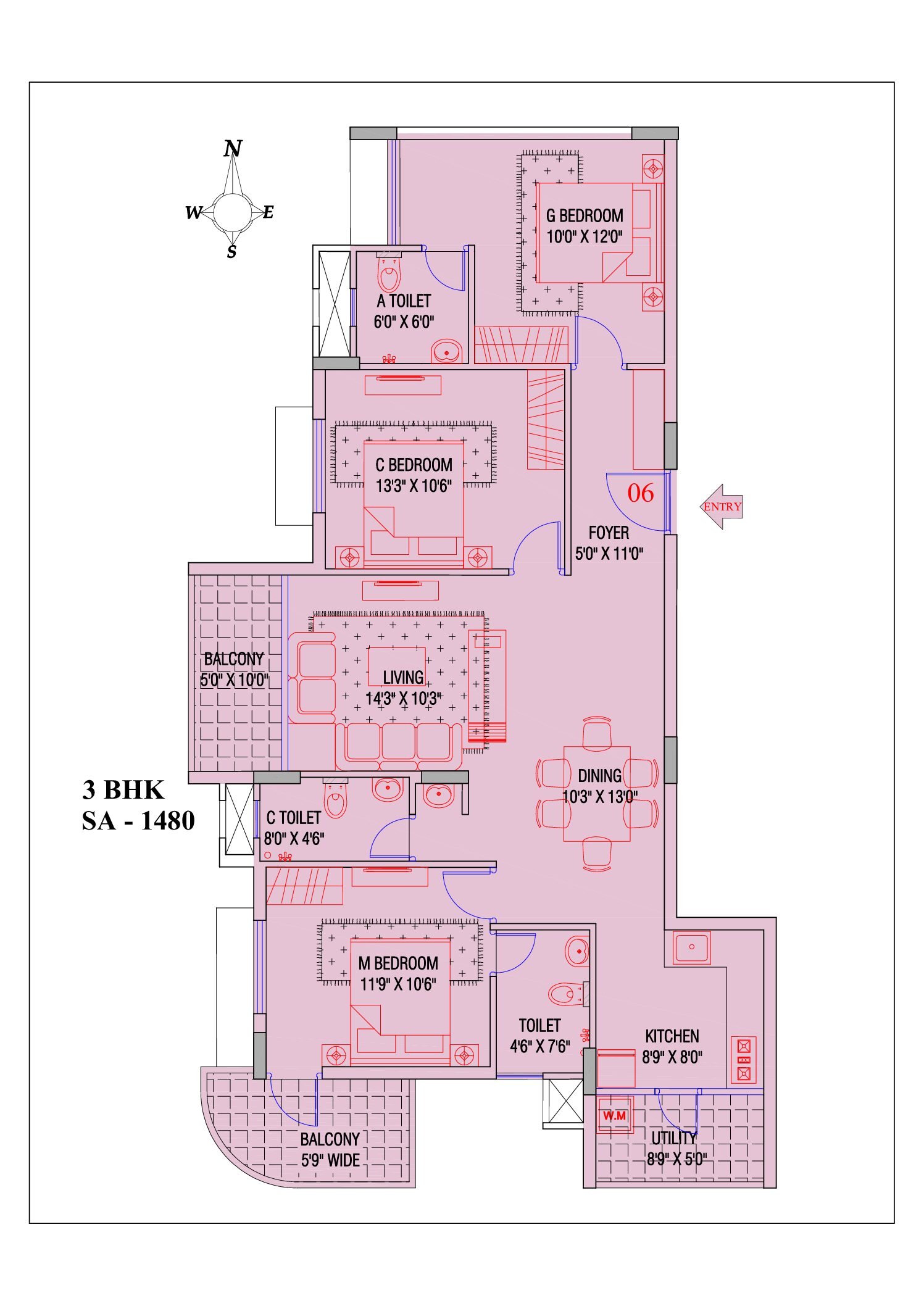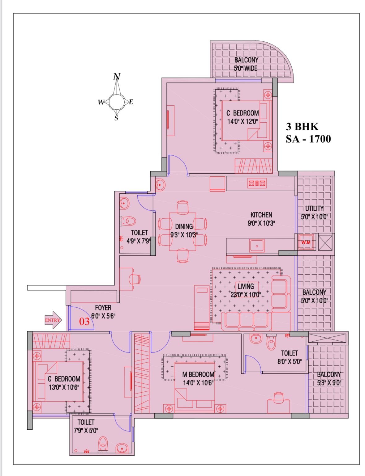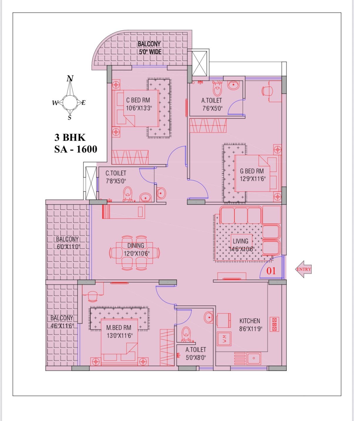 3Bhk North Entry Apartment with 3 balconies .