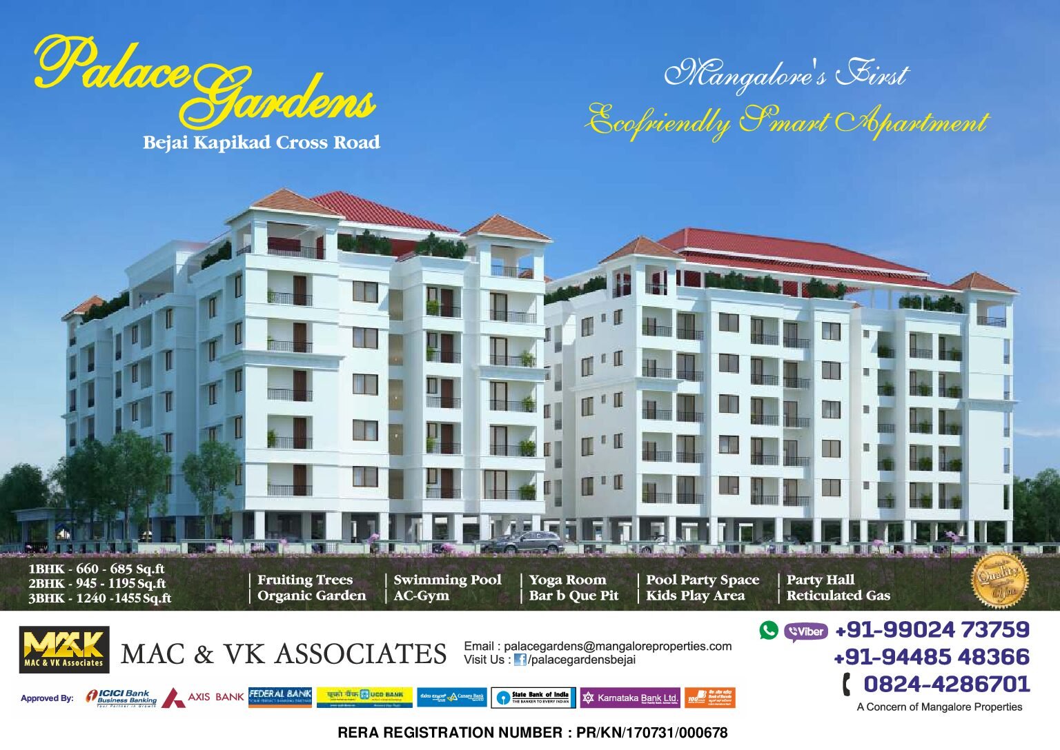 Palace Gardens comprises of 3 Blocks with over 120 apartments built on a sprawling area of 1.35 acres with amenities like a swimming pool , kids pool , play area , terrace party hall , backup power , security and gymnasium.